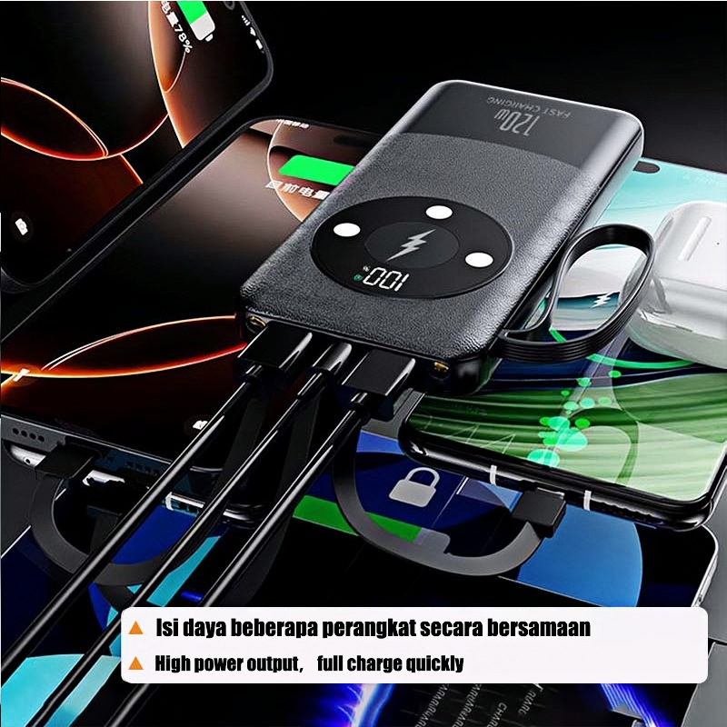 Power Bank 50000mAh Super Fast Charging 120W With Type C Cable -Lightning Cable - iPhone Cable - USB Cable Kapasitas Bes