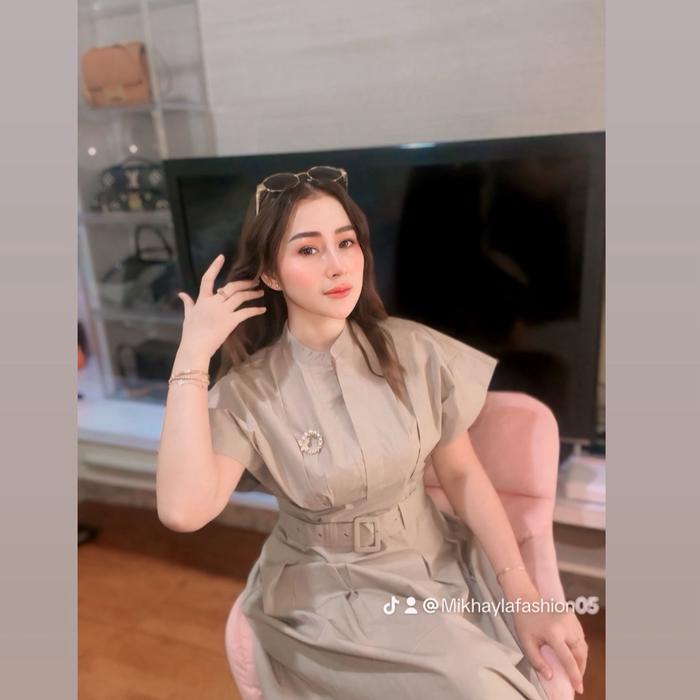 LONG DRES VV FASHION LENGAN PENDEK NYAMAN WANITA FORMAL CASUAL - BROWN, L