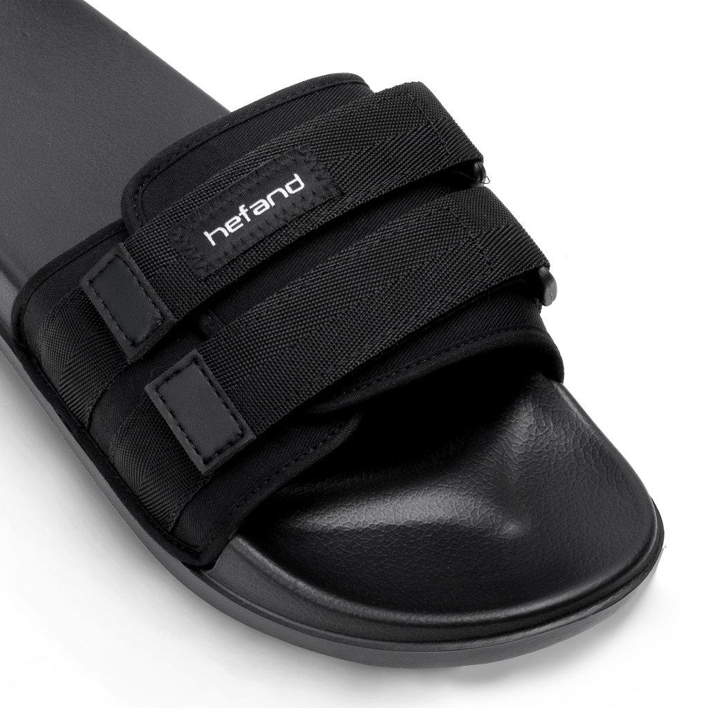 Hefand - Sandal Pria Jacko Slide Slip On Sendal Slipper Ringan Selop Anti Licin Unisex Black