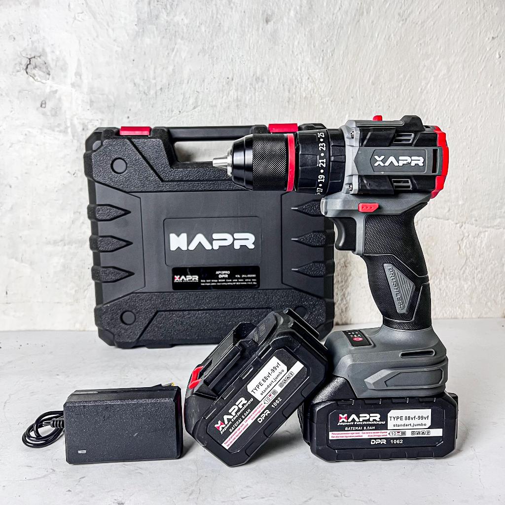MESIN BOR LISTRIK APR JAPAN BOR IMPACT BRUSHLESS KEYLESS 13MM 88VF 2 BATERAI AP13PRO POWERTOOLS OFFICIAL