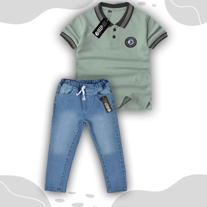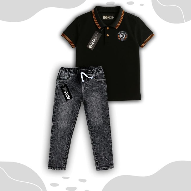 Setelan Anak Laki Laki Distro Premium Kaos Kerah Polo & Celana Jeans Panjang Usia 1 2 3 4 5 6 7 8 9 10 11 12 Tahun