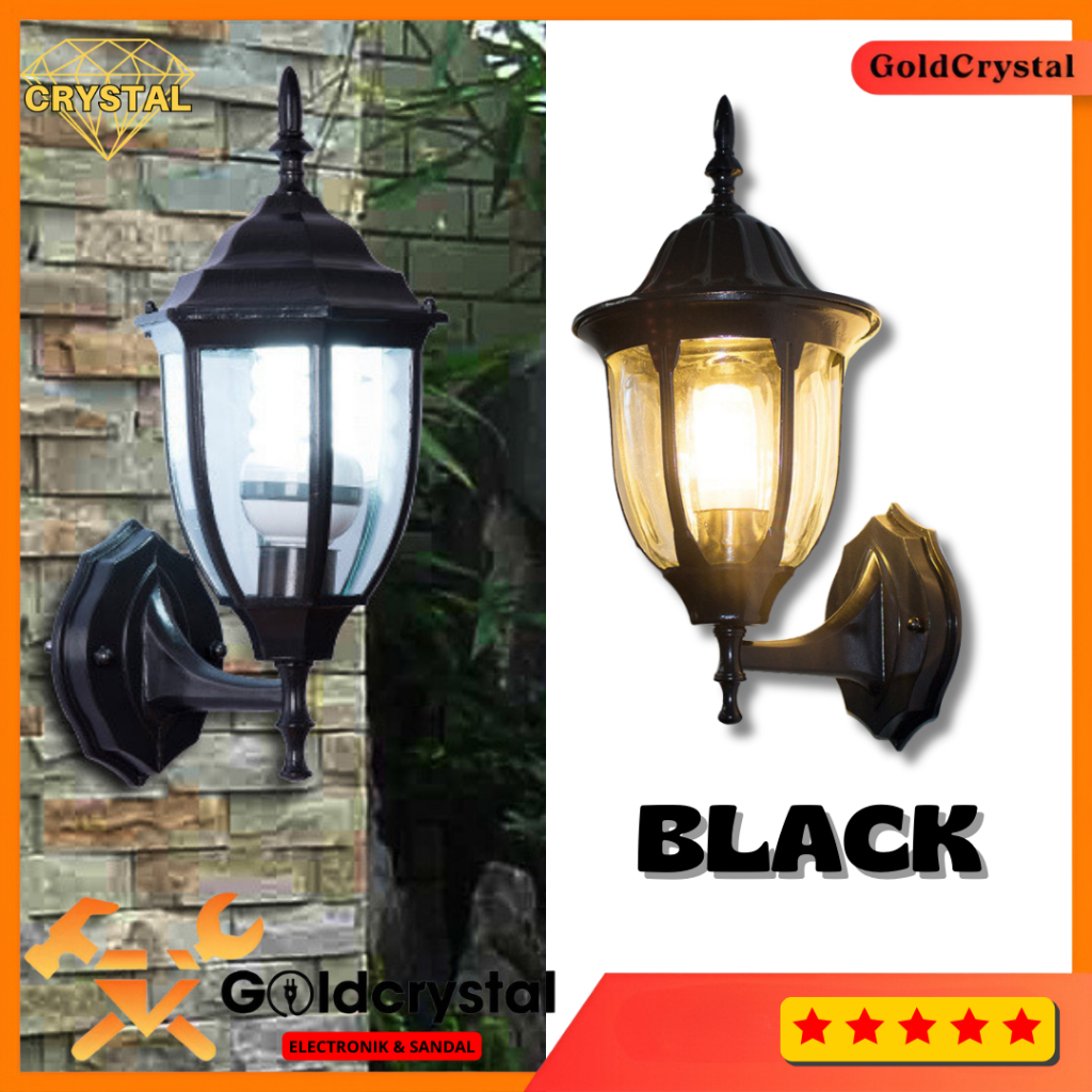 Lampu Dinding Taman Outdoor Model Vintage Klasik Waterproff Aluminium Kaca Dekorasi / Black/60lld5