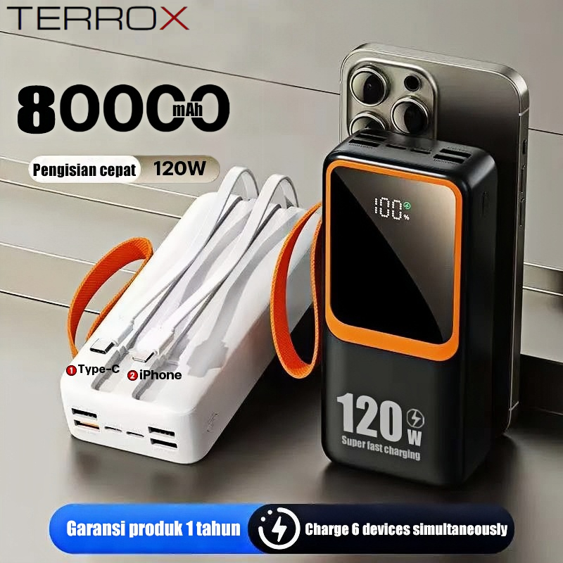【80000mAh 120W PD】Powerbank Y020 - 6 Port USB Type-C/Lightning, Fast Charging for All Hp, Garansi 1 Tahun