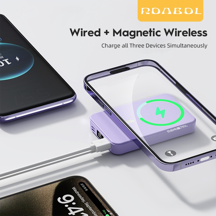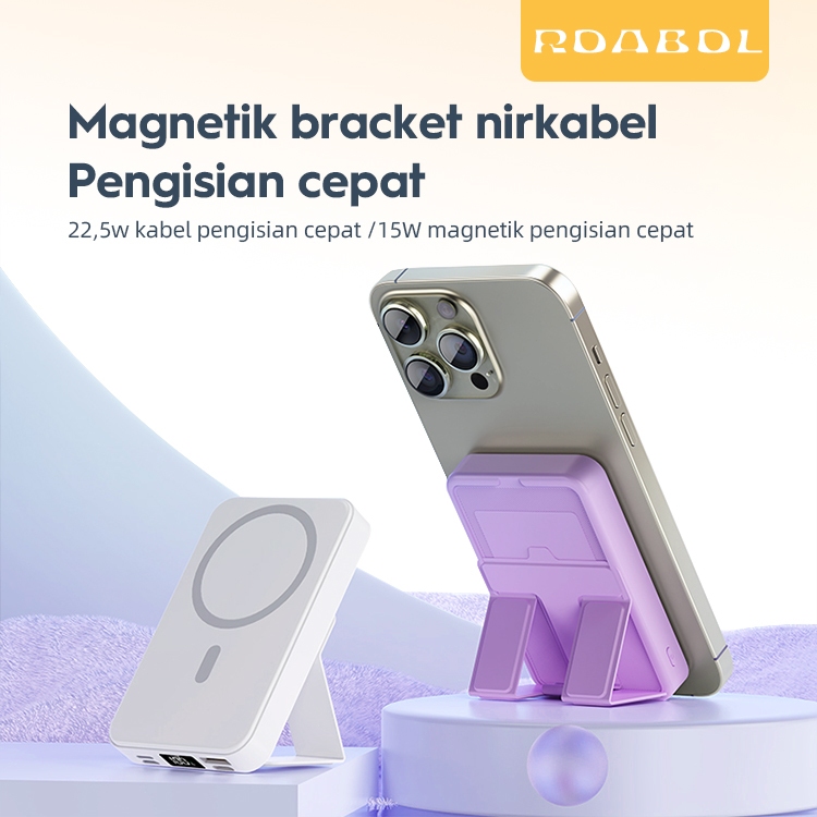 Roabol 10000mAh Magsafe PowerBank Magnetic Wireless Charger Powerbank with Stand for IPhone Samsung