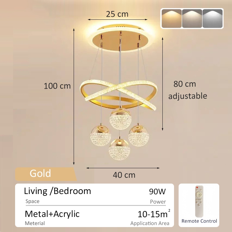 Kristal Lampu Gantung Remote Led 3 Warna Minimalis Mewah Chandelier Ruang Tamu Bar Restoran Kamar Tidur Lampu Gantung