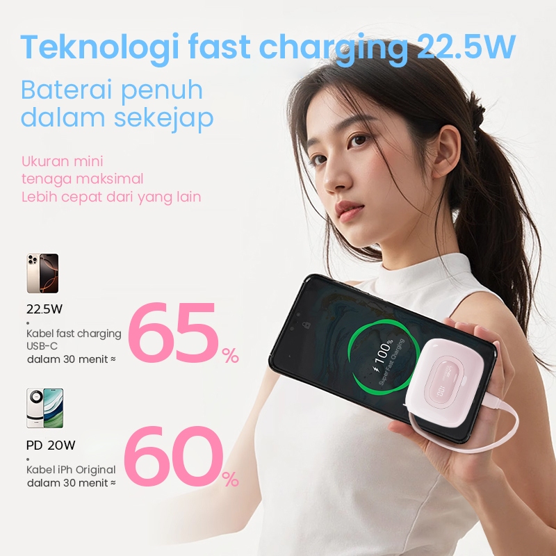 [ Saya yang terkecil 10000mAh ] UNE POWERBANK Fast Charging Mini 10000mAh 22.5W Type C & L line CCC