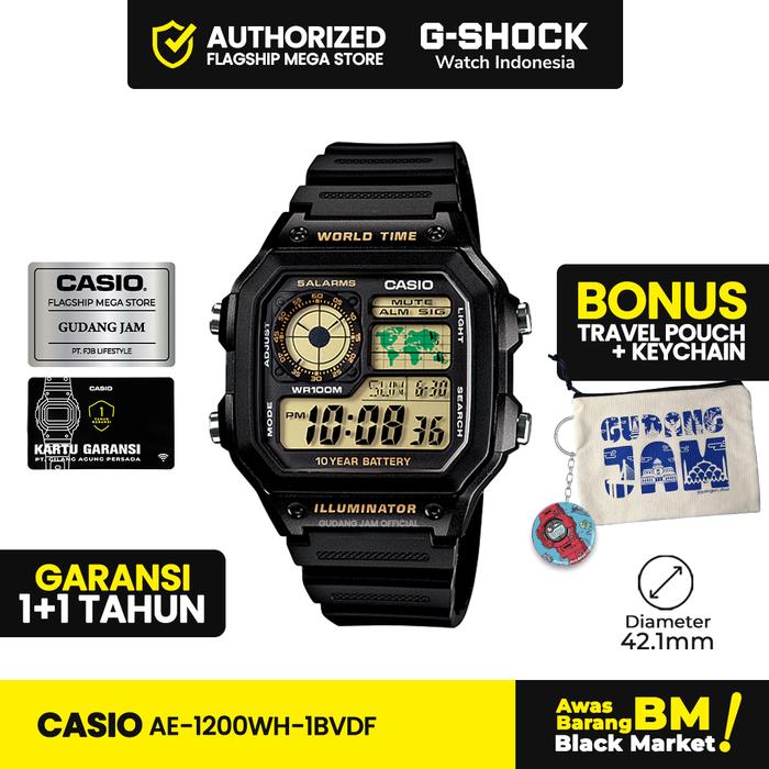 Casio General AE-1200WH-1BVDF AE-1200WH AE-1200 AE1200WH AE 1200WH Stopwatch Jam Kaca