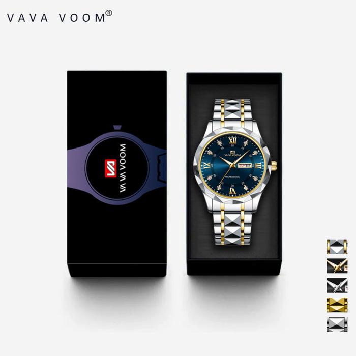 VAVAVOOM 2733 Jam Tangan Pria Original Luxury Rantai Tahan Air Stainless Steel Analog Quartz Watch +