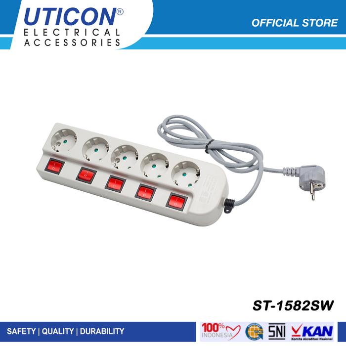 UTICON Stop Kontak 5 Lubang Stopkontak Multi Saklar ST-1582SW + Kabel