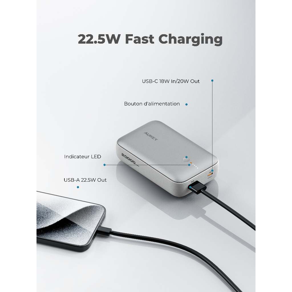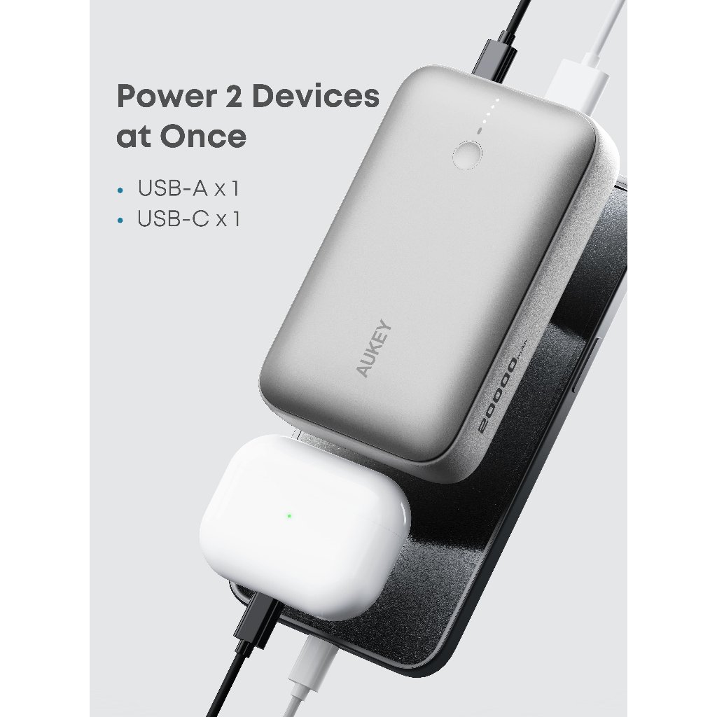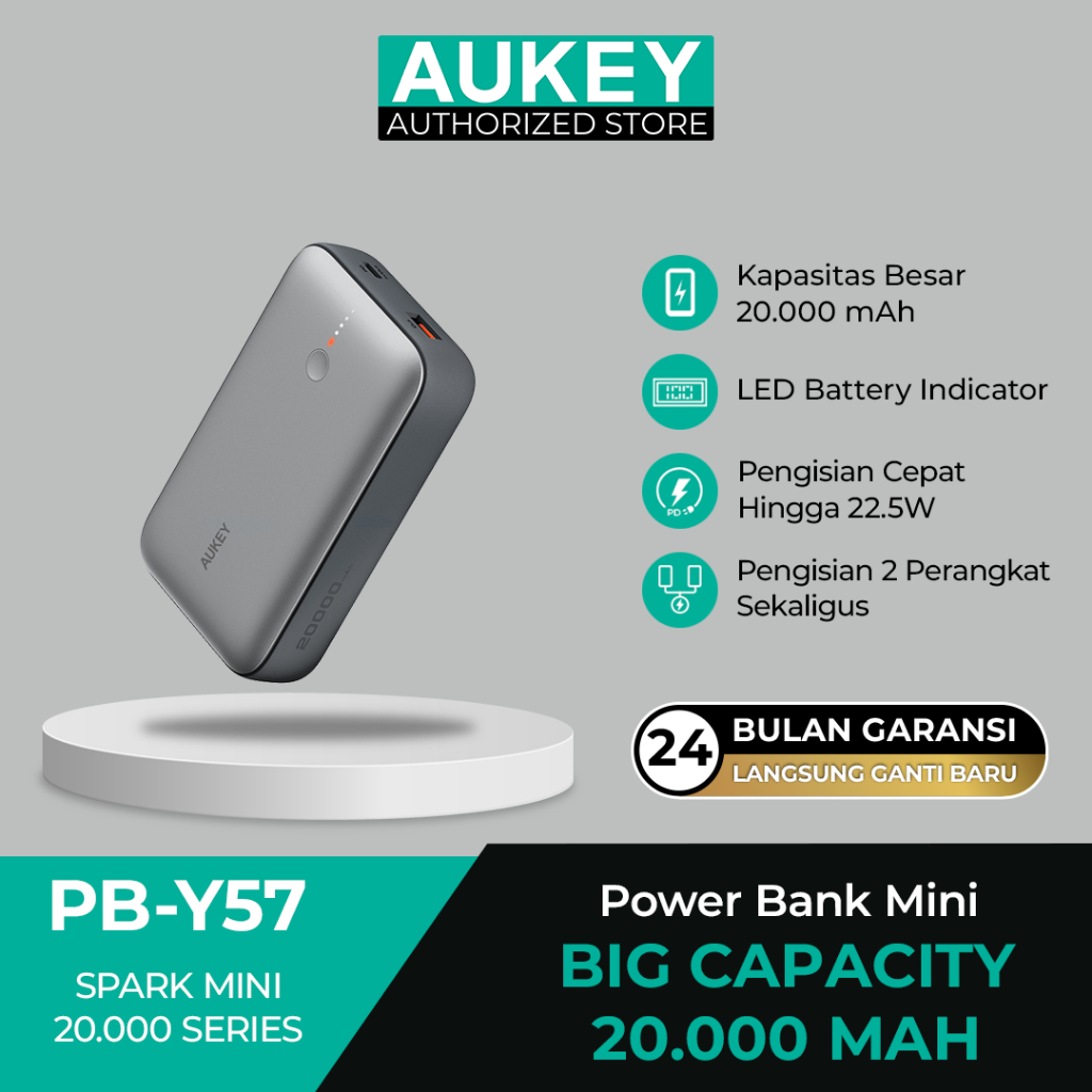 Aukey Power Bank 20000 mAh PD 3.0 Fast Charging 22.5W USB & Type C Mini Multiport Powerbank Slim Kapasitas Besar - PB-Y5