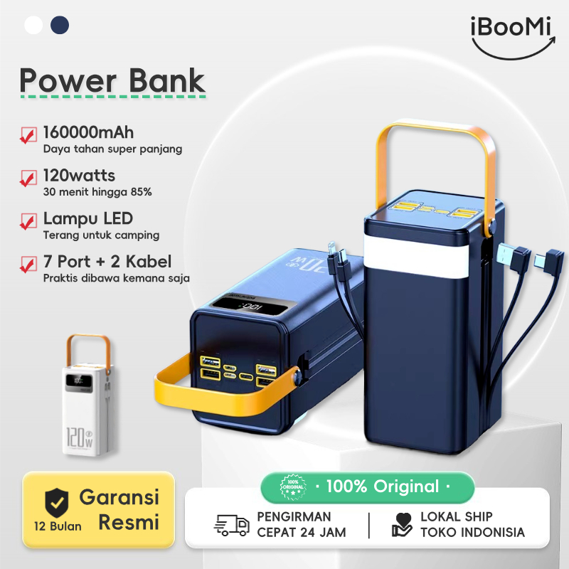 BOOMii Power Bank 160000mAh Kapasitas Besar Fast Charging PD120W + LED Lampu Outdoor Powerbank