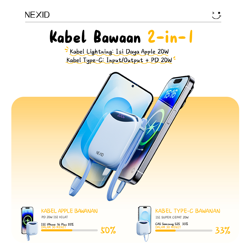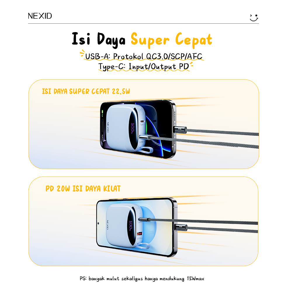 Nexid Powerbank Mini 10000mAh 22.5Watt Fast Charging Power Bank for iP & Android