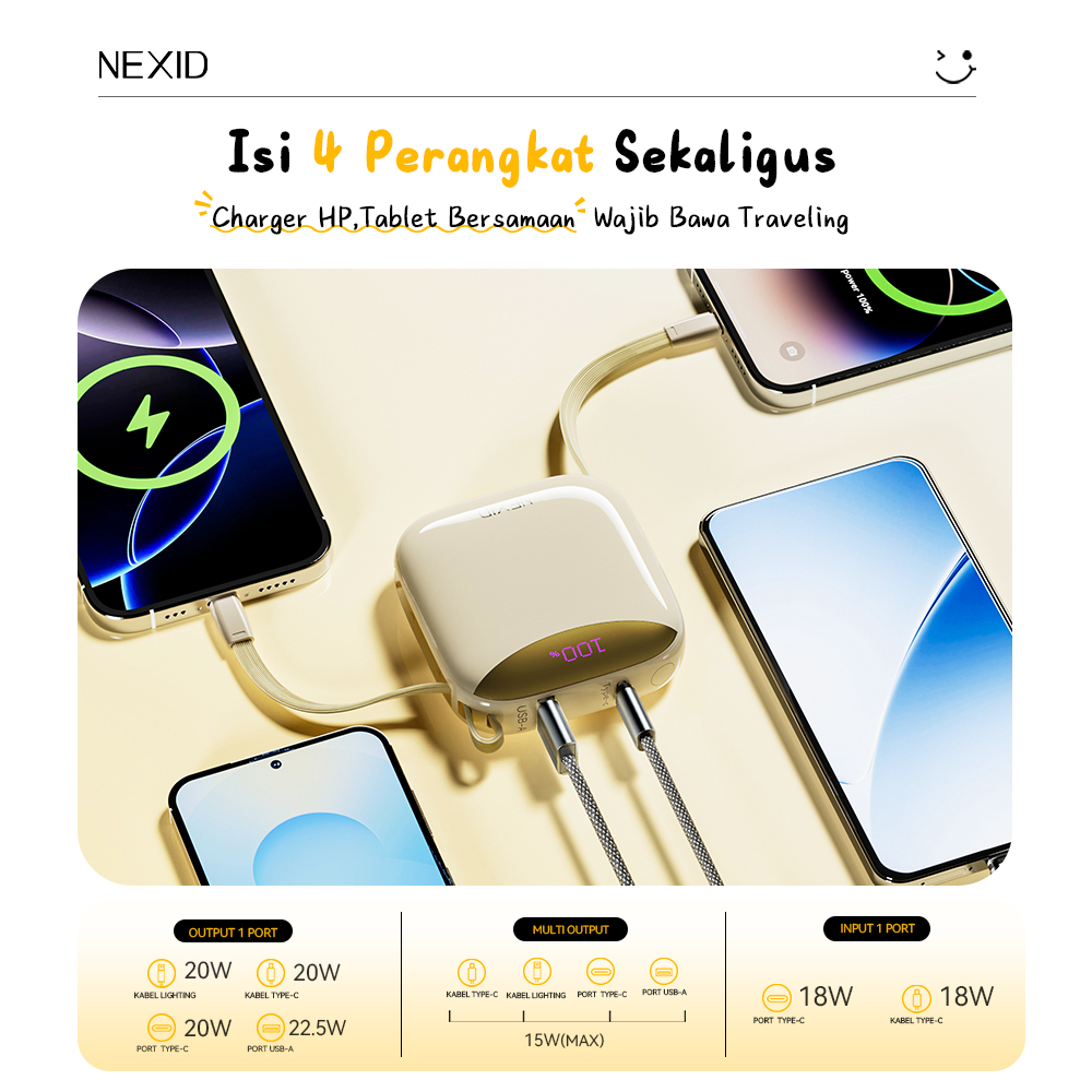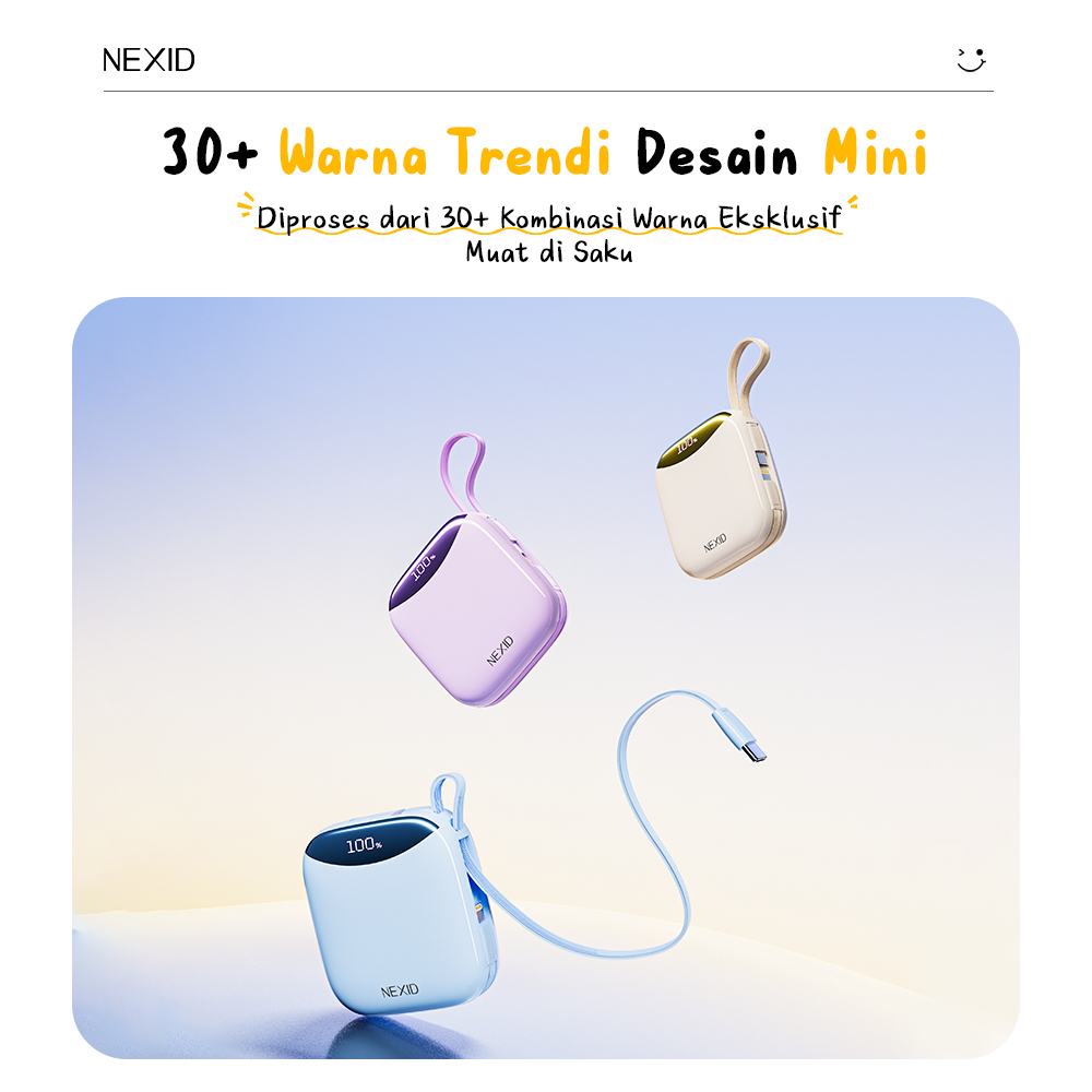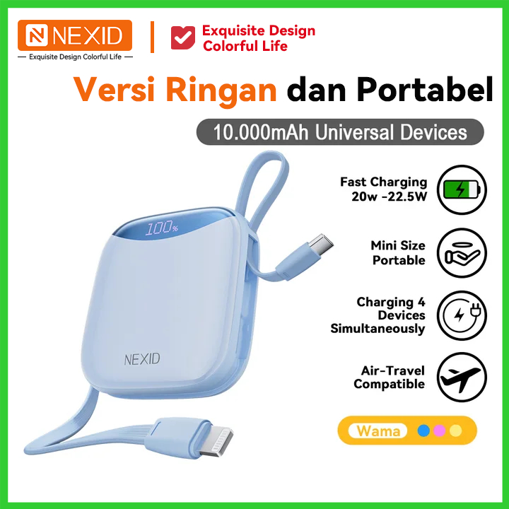 NEXID Fast Charging 22.5W Powerbank mini 10000mAh Colorful Built in 2 Kables Power bank