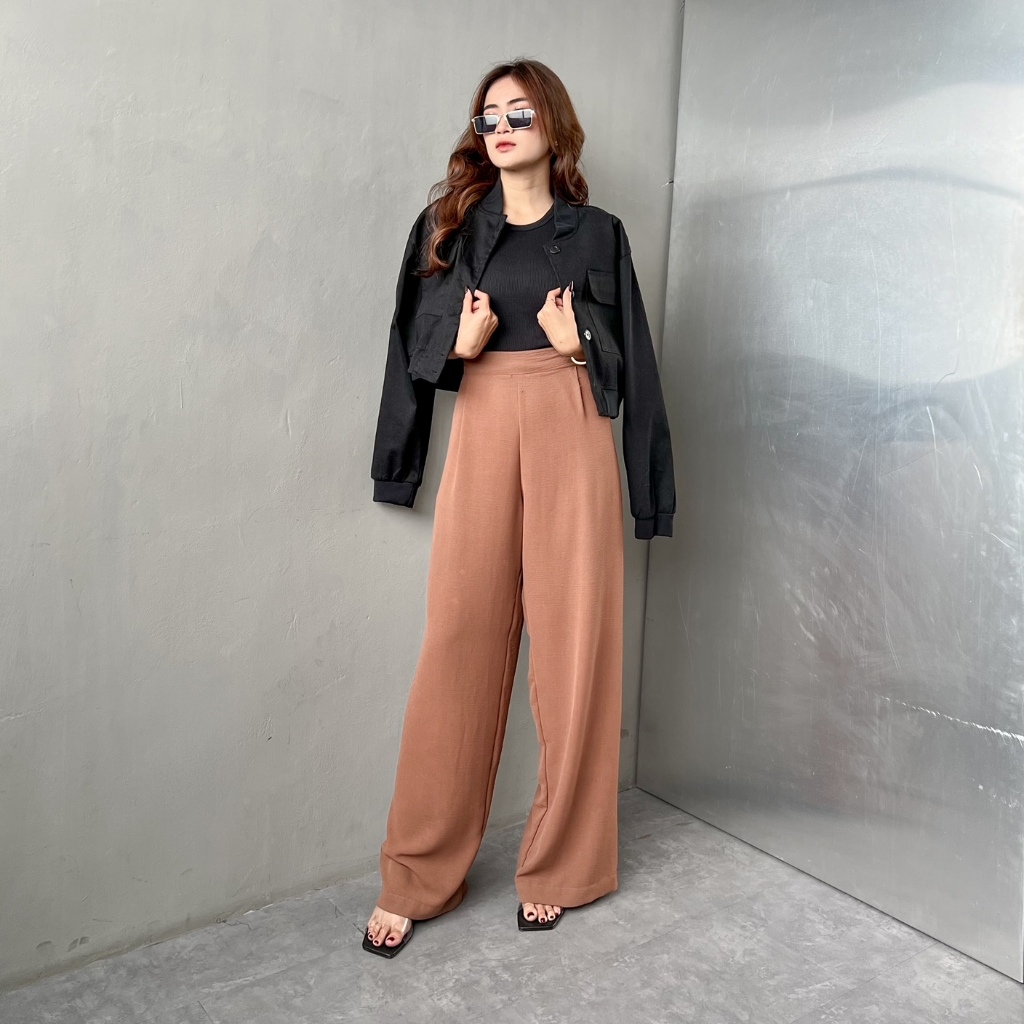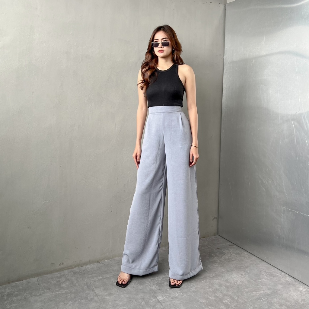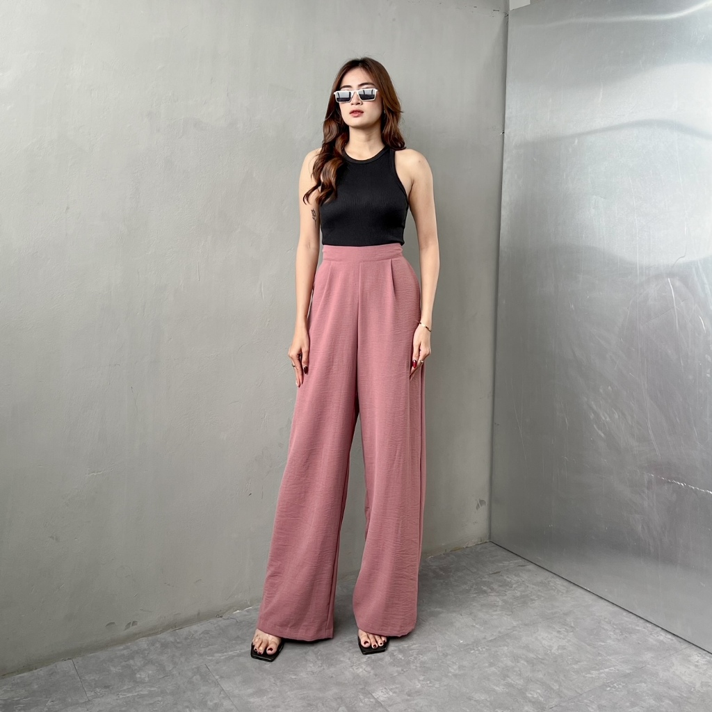 [READY STOCK] Georgios Women l Ely Culottes Pants | Celana Panjang Kulot Wanita Kekinian Bawahan Casual High Waist Dewasa Hitam Loose Airflow Tebal