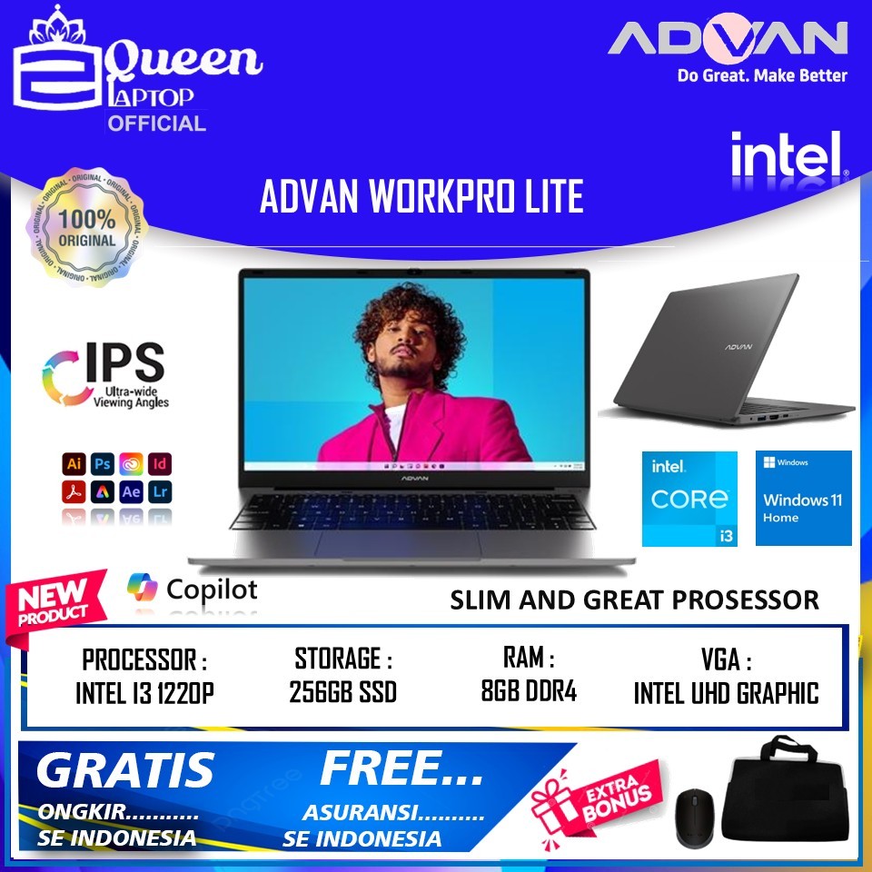 Laptop Resmi Advan Workpro Lite 14 Intel Core I3 1220P 8Gb 256Gb Ssd Win 11 Home Original
