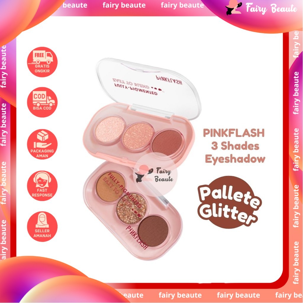 PINKFLASH 3 Shades Eyeshadow Palette Giltter High Pigment Easy To Blend Lasting Mudah Di Blend