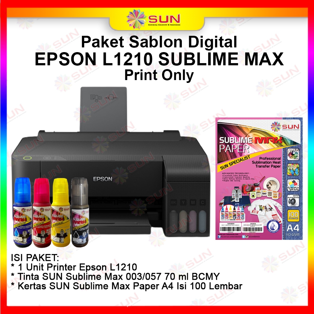 Printer Paket Sablon Digital Tinta Sublime Max SUN Epson L121 / L1210 / L1250 / L3210 / L3250 / L5290 - Print Scan Copy Wifi
