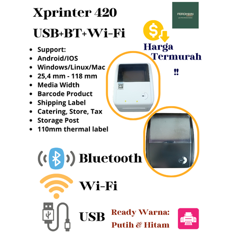 X-Printer Bare 420B Tipe (USB, BT, WIFI) - X-Printer Print Resi 100 PERSEN Berkualitas