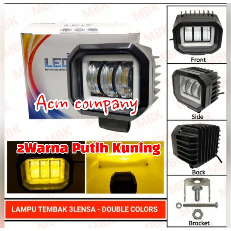 LAMPU TEMBAK SOROT DAIMAKER 3MATA 2Warna Putih Kuning 30Watt Model Kotak