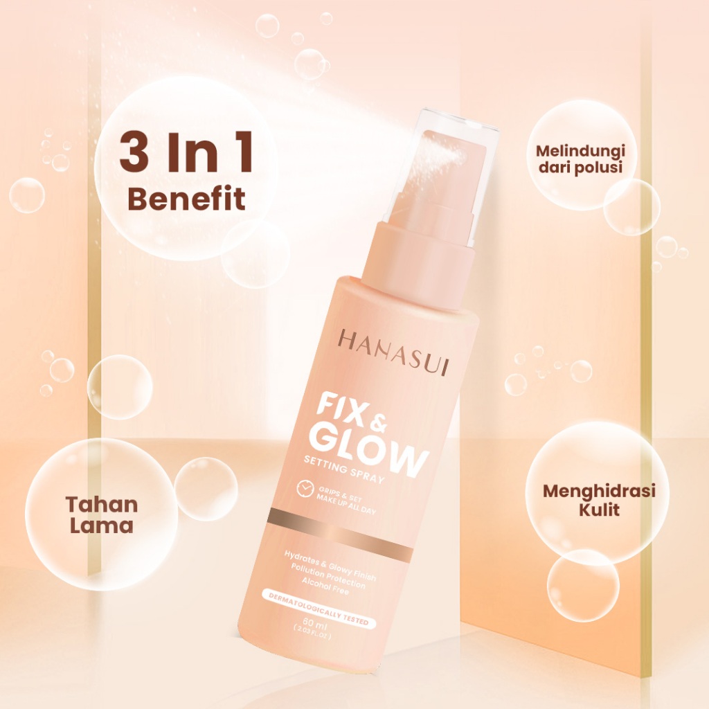 Hanasui Fix & Glow Setting Spray - Setting Spray Glowy Finish Make Up Menghidrasi Kulit MaskProof Tahan Lama