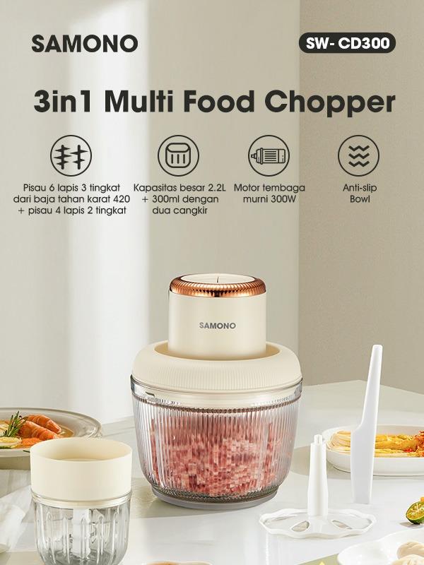 Samono Food Chopper 2 in 1 kapasitas 2,2L dan 300ml Multifungsi 300 Watt Pengggiling Daging