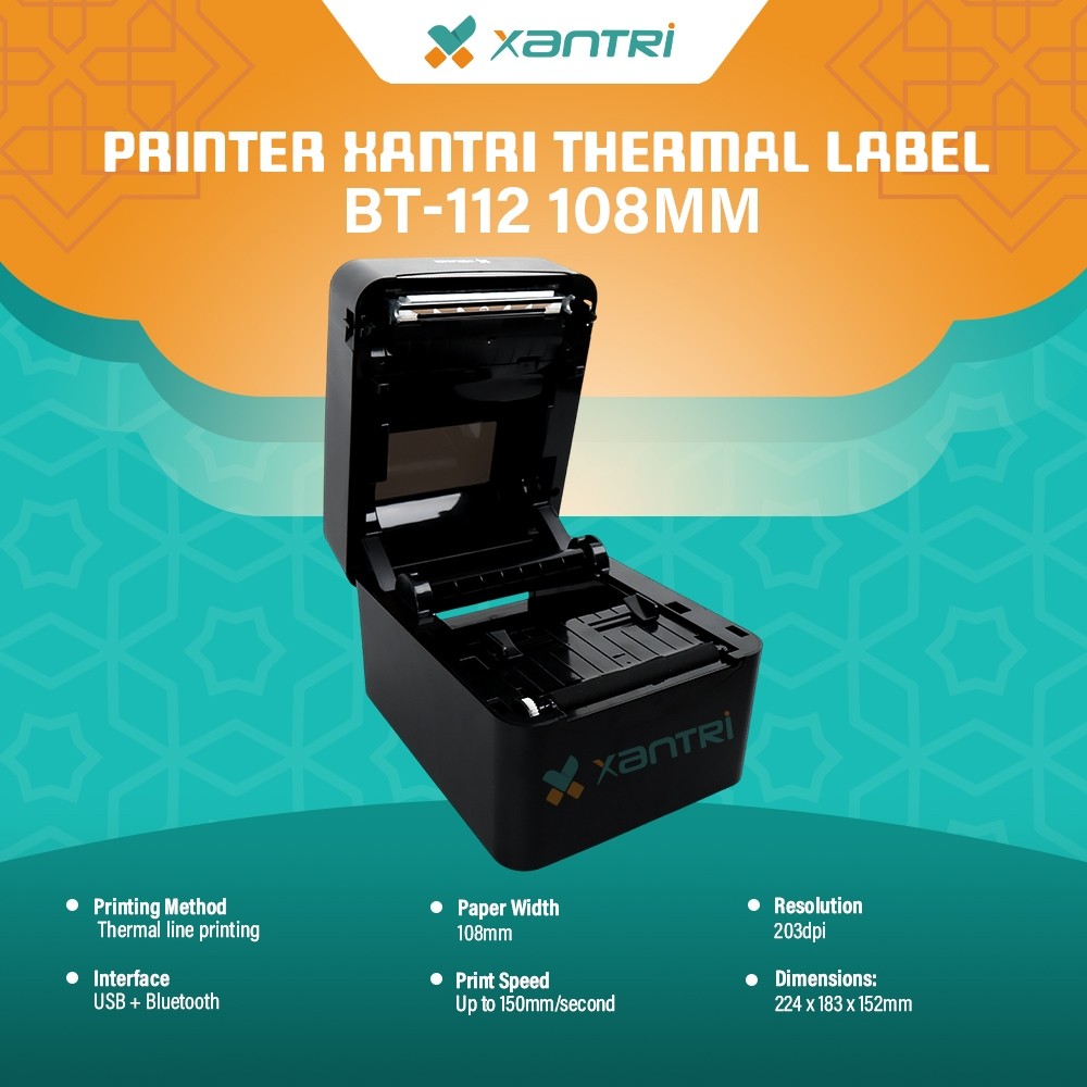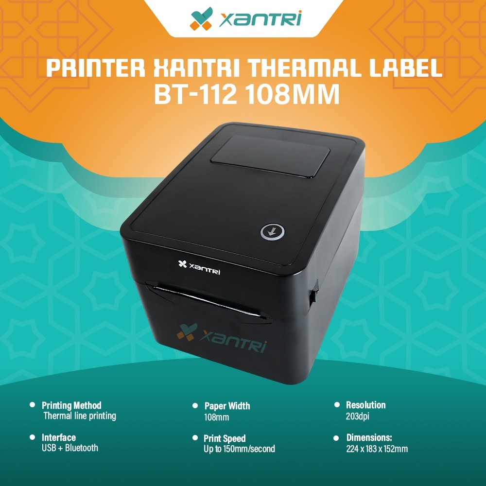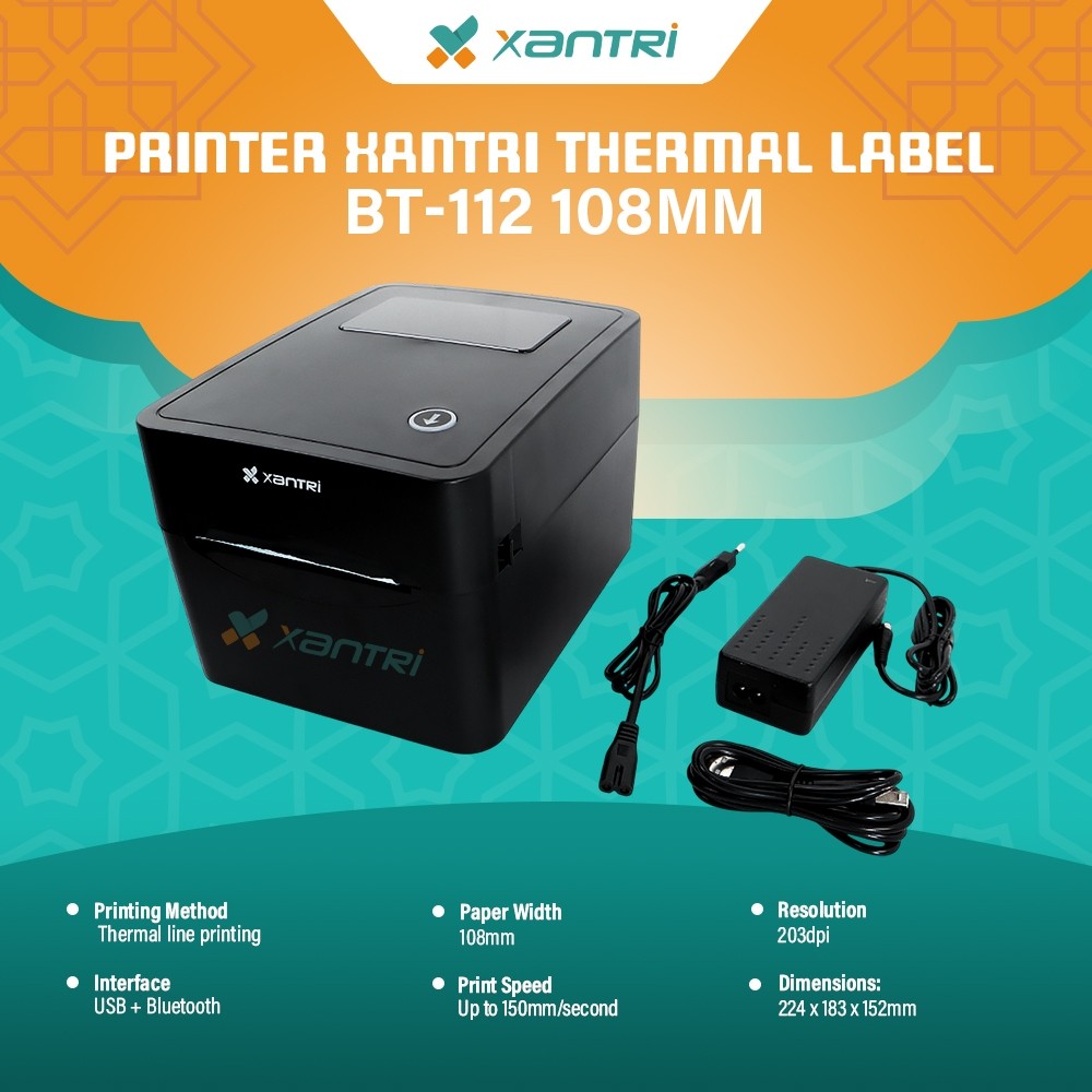 Xantri - PRINTER BARE THERMAL LABEL Stiker BT-112 420b 100mm 108mm 110mm KONEKSI USB BLUETOOTH BERGARANSI Pengirman Resi Online Shope JNE JNT