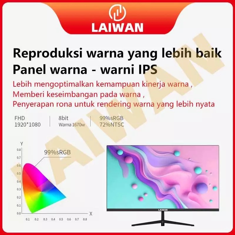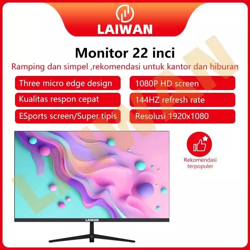 PC Monitor TV Monitor 22 inch IPS Full HD2K & 75Hz Anti Gangguan Tanpa Rangka - LAIWAN MONITOR