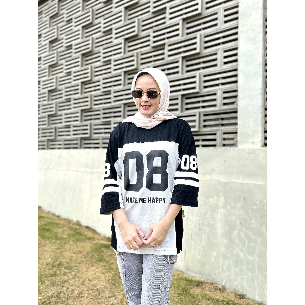 Kaos Baseball Number / Oversize LD 120 Wanita Lengan 7/8 / T-shirt Sporty Premium
