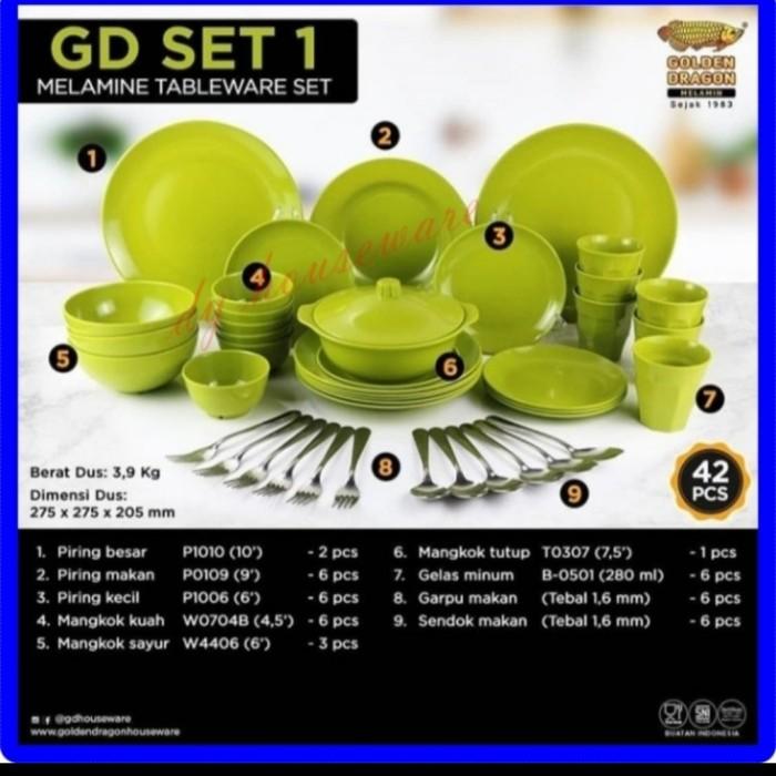 Piring Mangkok Melamin Set Golden Dragon 42 pcs - merah marron - Ungu