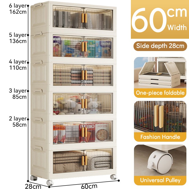 80cm Besar 2/3/4/5/6 Susun Lemari Plastik Jumbo Lemari Plastik Lipat Penyimpanan Serbaguna
