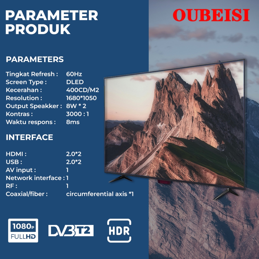 OUBEISI TV Digital 21/22/2/24/25/27/30/32 inch (Model TCLG-W21/22/24/25/27/30inch) [Garansi 3 Tahun]
