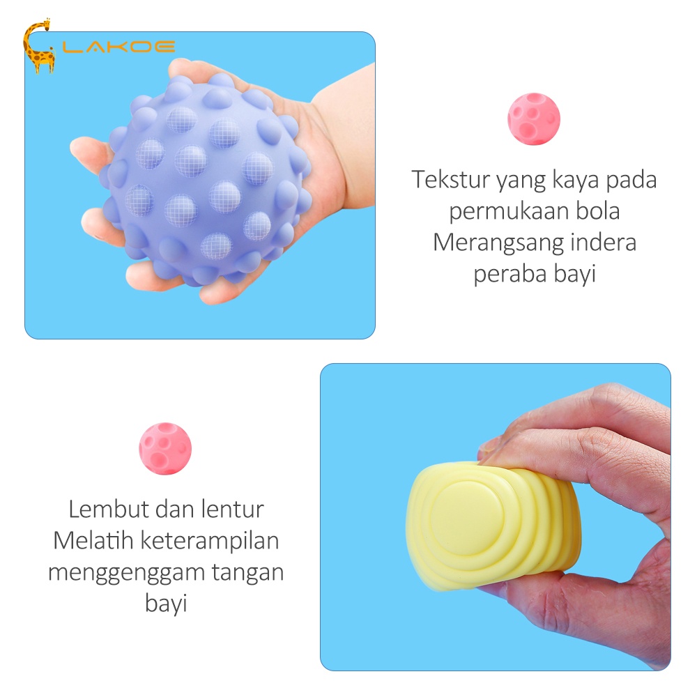 LAKOEOFFICIALMALL Bola Silikon Sensory Mainan Bola Karet Mainan Pelatihan touch ball Anak Yang Baru Lahir