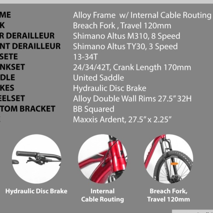 Sepeda gunung 27.5 inch mtb united monanza 4.0 alloy 24 Speed shimano rem oli hidrolik innercable sni new