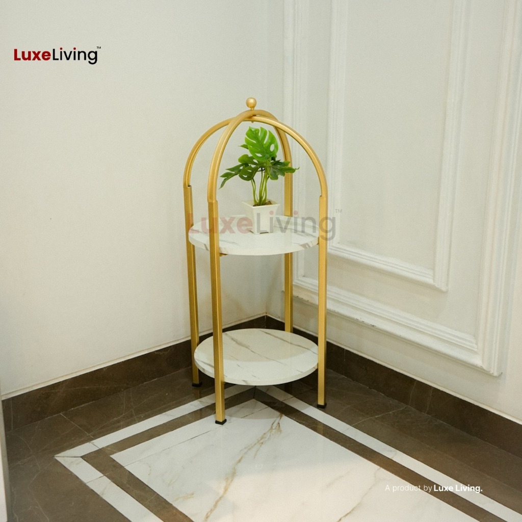 Rak Susun Pajangan Sudut Minimalis Besi Industrial Modern Besi Gold Hasta Hpl Marmer Luxe Living