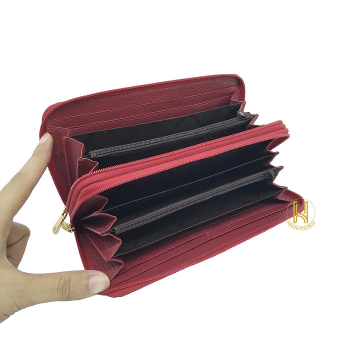 DOMPET PANJANG WANITA KULIT - DOMPET SELETING KELILING - DUA RESLETING - CERRY JOURDAN - HITAM
