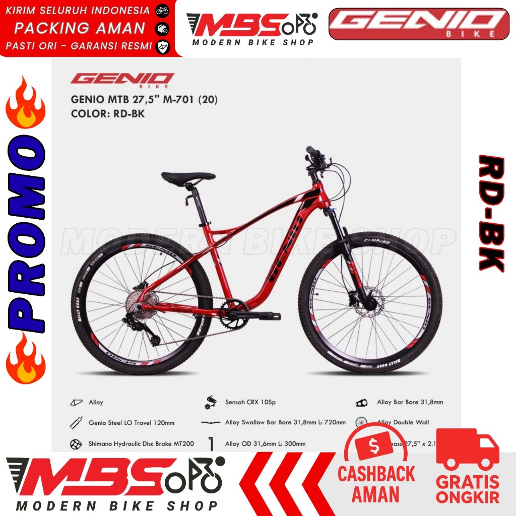 [PROMO TERBATAS] GENIO M701 M-701 SEPEDA MTB GUNUNG ALLOY 27"5 INCH BY UNITED 10 SPEED REM HIDROLIK CARBON LOOK DEWASA REMAJA
