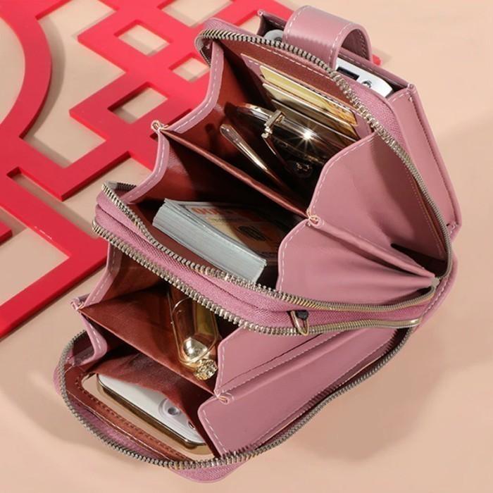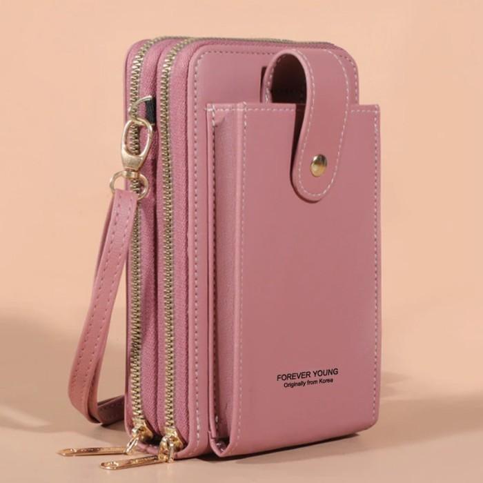 UNIVERSAL CASE DOMPET TAS BAG HP MINI KULIT TALI CASING POUCH SLING - HITAM