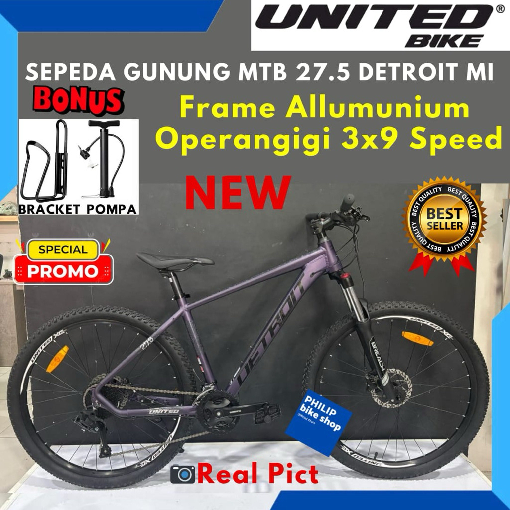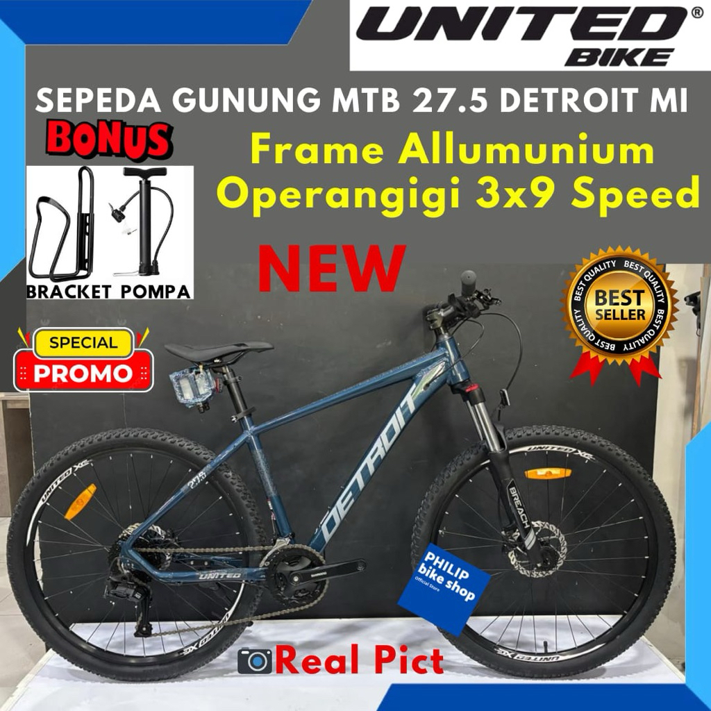Sepeda Gunung 27.5/29 MTB United Detroit MI Miami 4.0 Frame Allumunium Operan Gigi 3x9 Speed Terbaru
