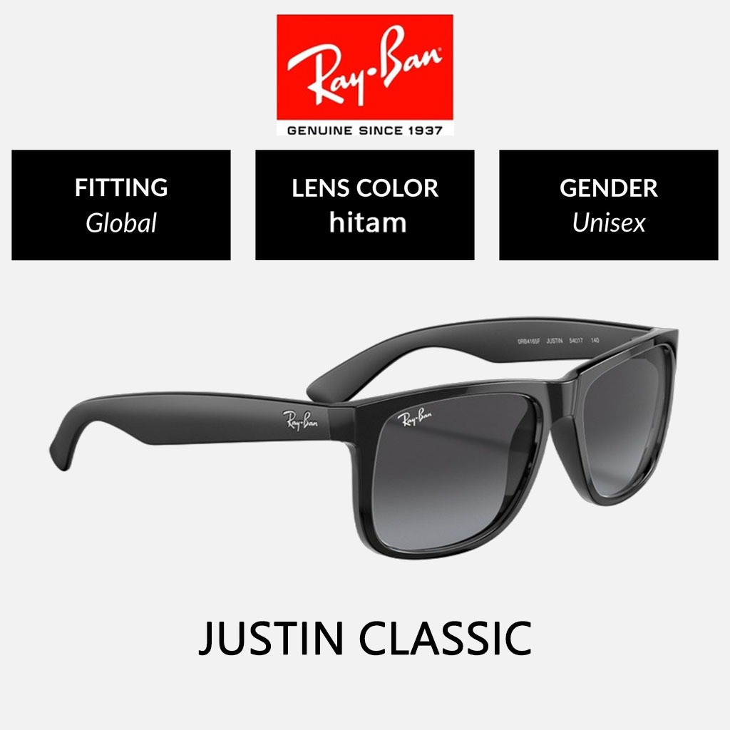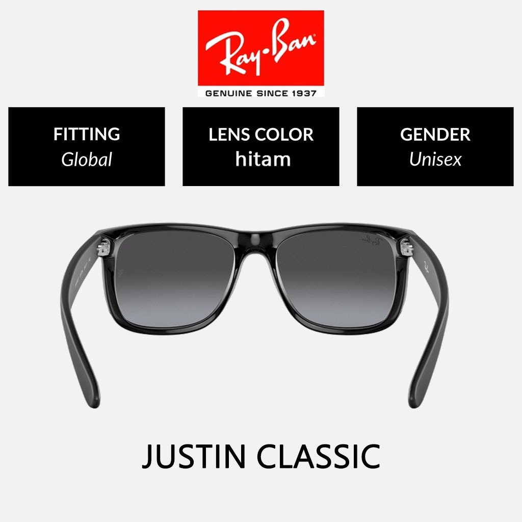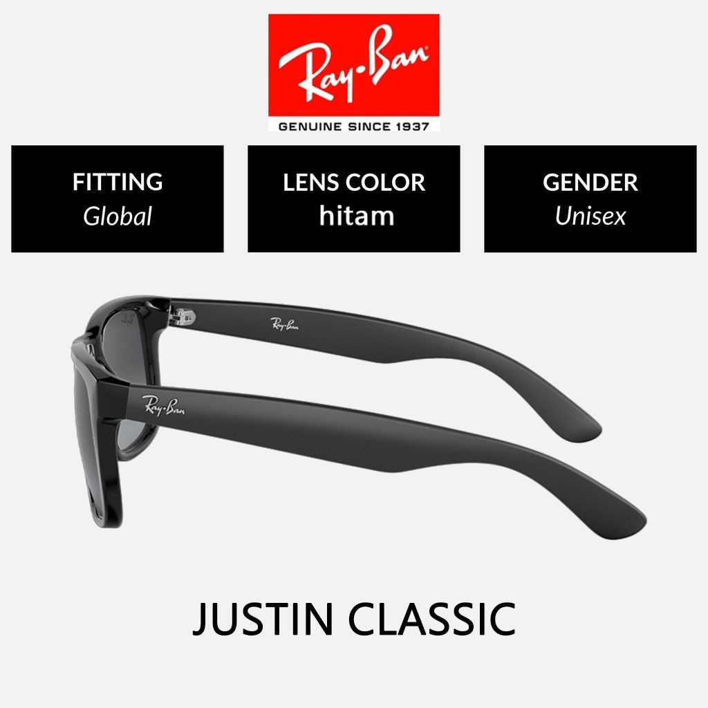 KACAMATA HITAM RAY-BAN WAYFARER JUSTIN RB4165 BLACK GREEN PRIA SUNGLASSES