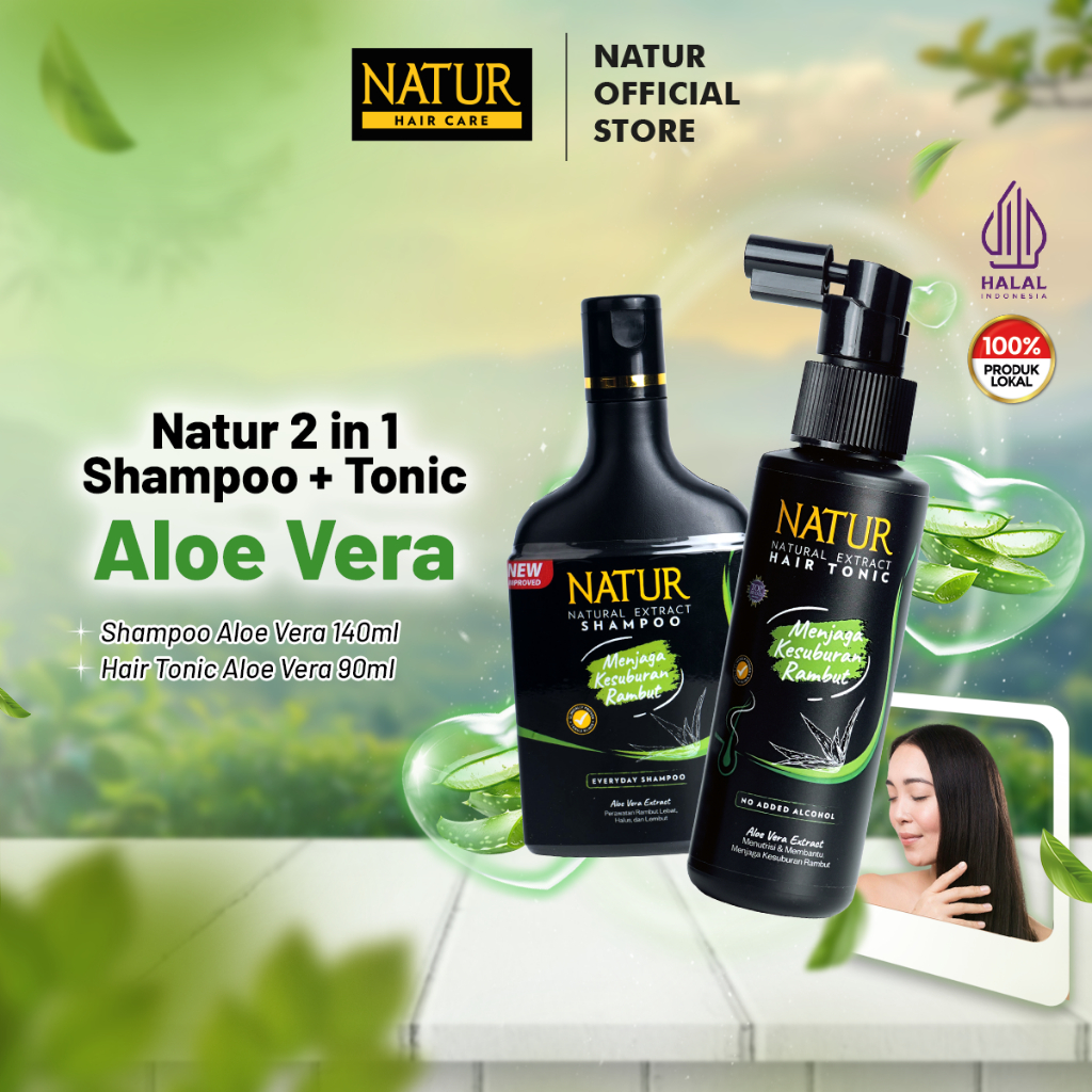 Natur Shampoo & Tonic Aloe Vera 2 in 1 - Paket Perawatan Rambut Lebat dan Hitam