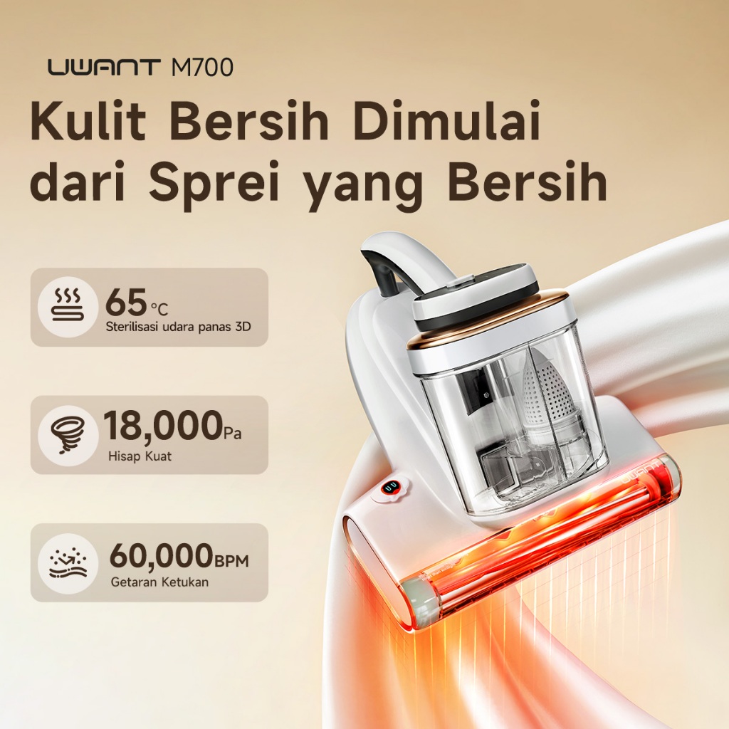 UWANT M700 Dust Mite Vacuum Cleaner Uap Anti-Tungau Dengan Bahan Alami 18Kpa Cahaya UVC