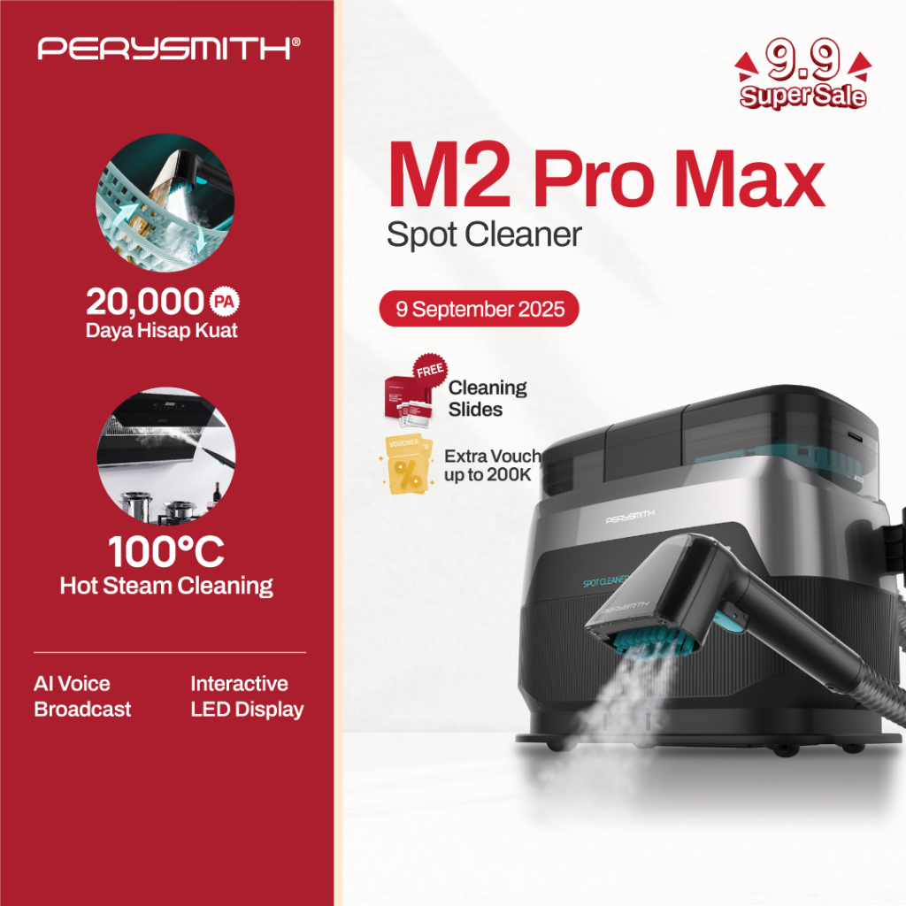 PerySmith M2 Pro Max Suhu Tinggi 100°C HOT & COLD Vacuum Cleaner 20Kpa Suction Wet Steam Vacuum Cleaner Multifungsi Deep Cleaning Mesin Pembersih Sofa Karpet Fabric Kasur