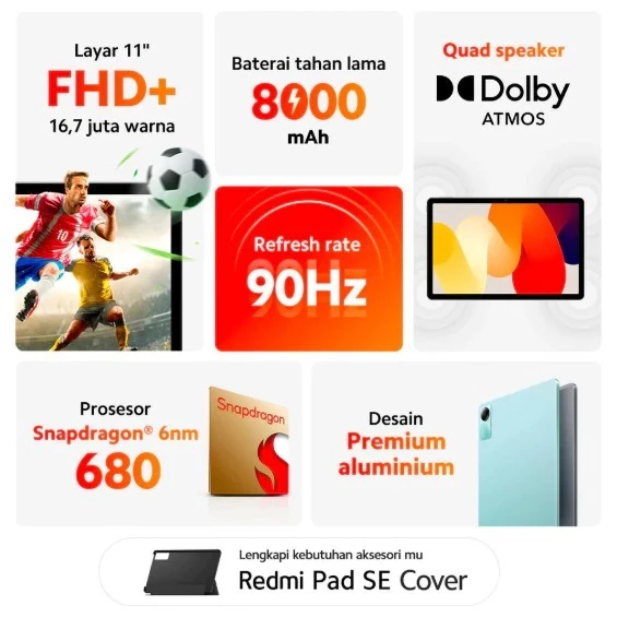 Redmi Pad SE 4+128GB Tablet | Dual Sim Bisa Zoom Canva | Bonus Stylus + Keyboard + Earphone | Garansi
