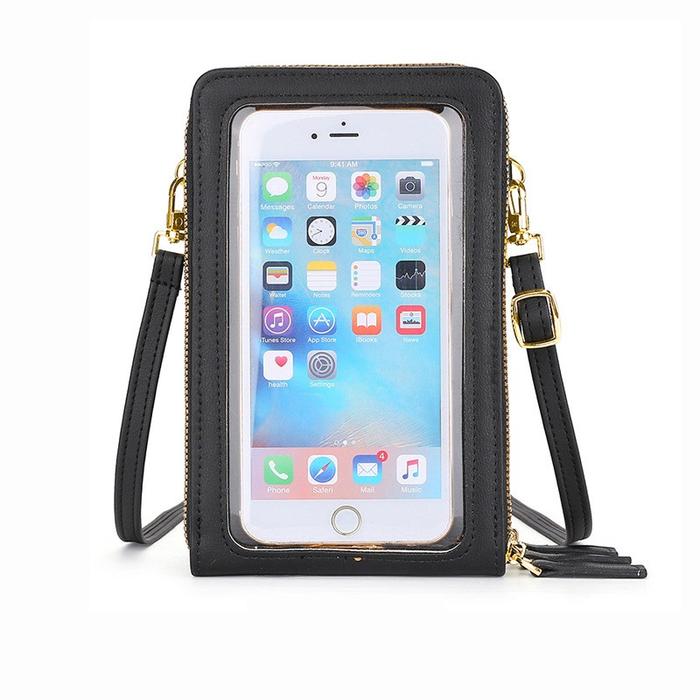 UNIVERSAL CASE DOMPET HP MINI KULIT TALI CASING POUCH SLING BAG TAS - HITAM
