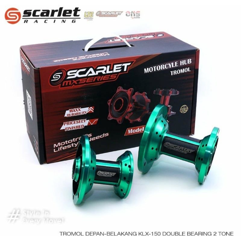 Scarlet Racing-Tromol Set Depan Belakang KLX 150 2Tone Hole 36 Double Bearing