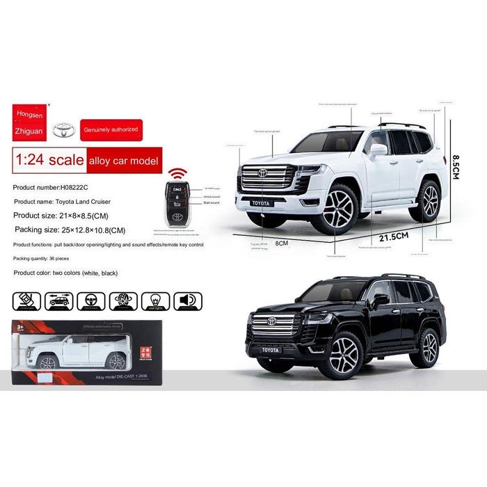 Diecast Zhiguan Land Cruiser LC300 kunci remote 1:24 lisensi resmi Lampu Mobil Toys Mesin Control