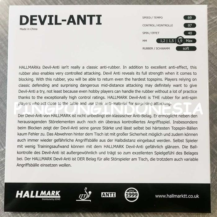 Hallmark Devil Anti - Karet Pingpong Rubber Tenis Meja Anti Bet Bat Defensive Allround+