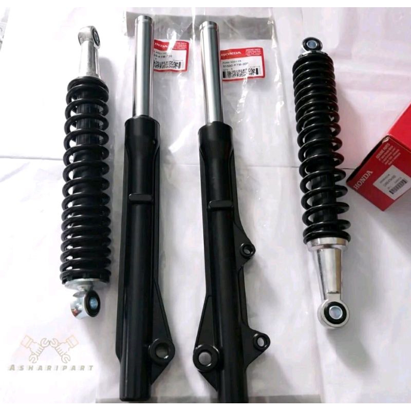 PAKET HEMAT AS SHOCK DEPAN + TABUNG DEPAN DAN SHOCKBLEKER BELAKANG HONDA SUPRA X OLD/LAMA , SUPRA X 125 LAMA & NEW , SUPRA FIT NEWS , KHARISMA KTM/KTL (CAKRAM) HIGH QUALITY PRODUCT
