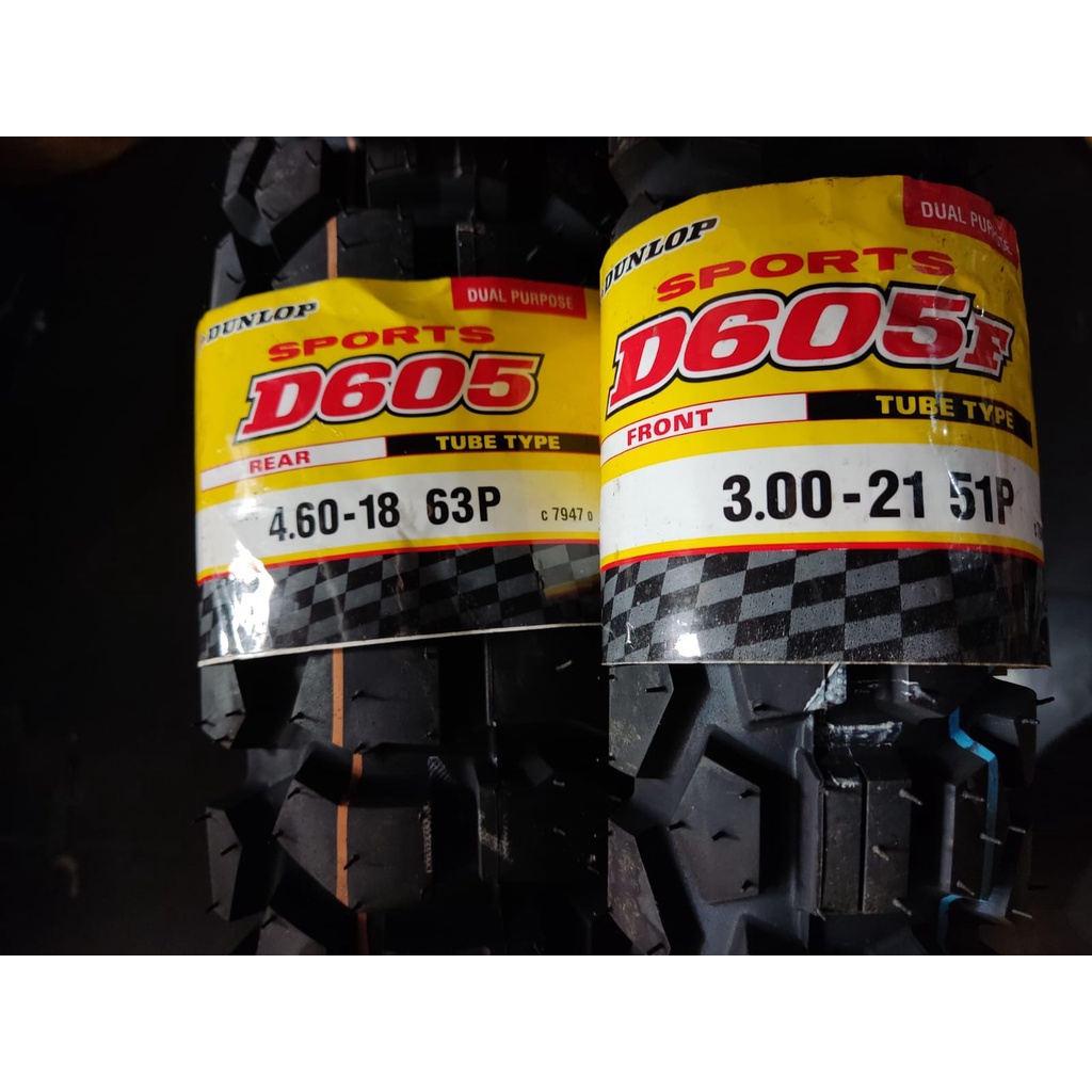 ( PAKET 2 BAN D605 ) 300 - 21 & 460 - 18 D605 DUNLOP Ban Luar Motor semi trail cross KLX CRF WR155