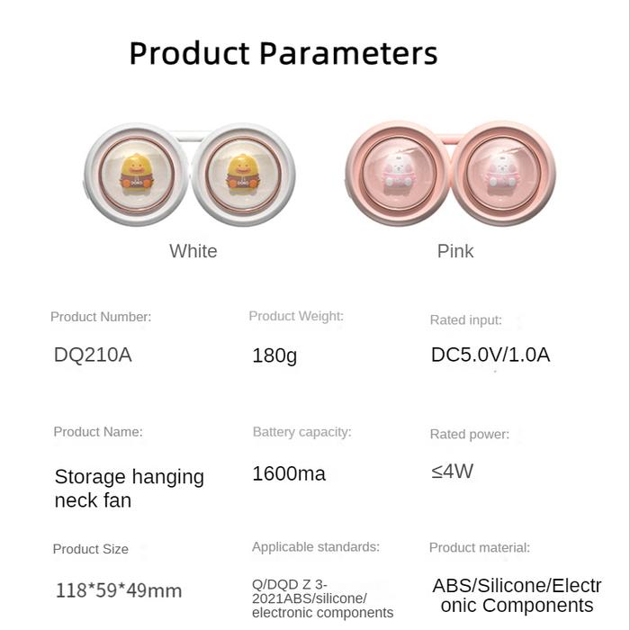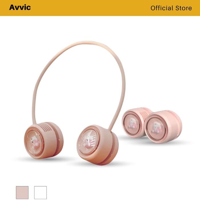 Avvic Kipas Angin Leher DQ210A Portable Cartoon Hanging Neck Fan Rechargeable Foldable Air Cooling